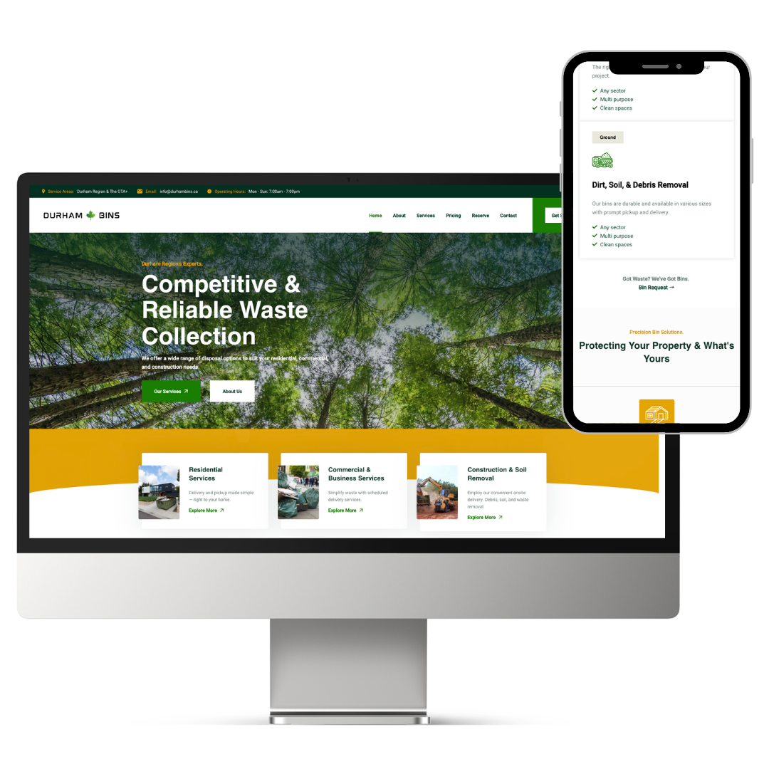 We designed and developed a clean, conversion-focused website for Durham Bins, built to showcase their bin rental and waste management services while making it easy for customers to request service. The goal was to create a straightforward, user-friendly platform that quickly communicates their offerings and service areas.