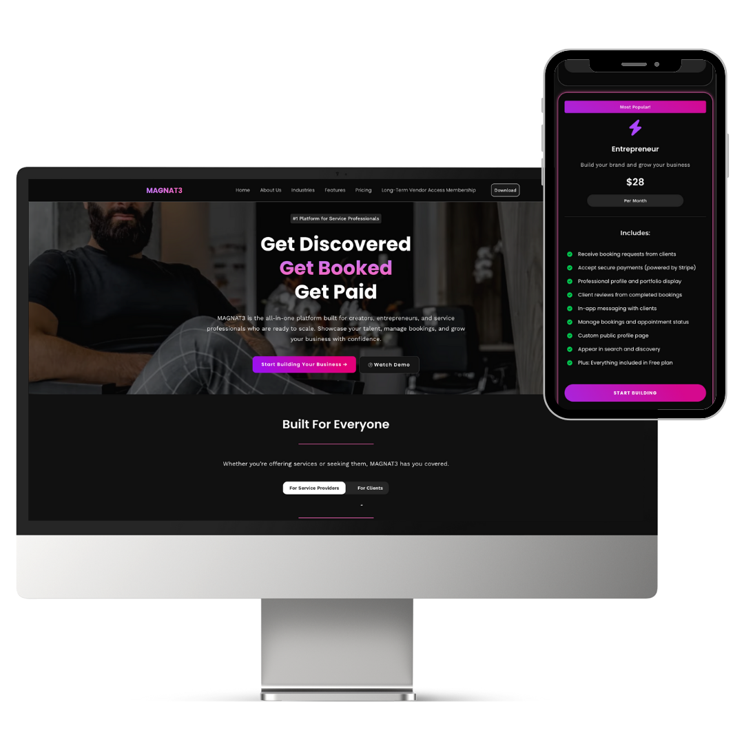 We led a full website redesign for Magnat3, transforming their previous site into a modern, high-impact digital platform that better supports the growth of their vendor booking and affiliate ecosystem. The objective was to improve clarity, user experience, and conversion flow while maintaining continuity with the brand’s original vision.